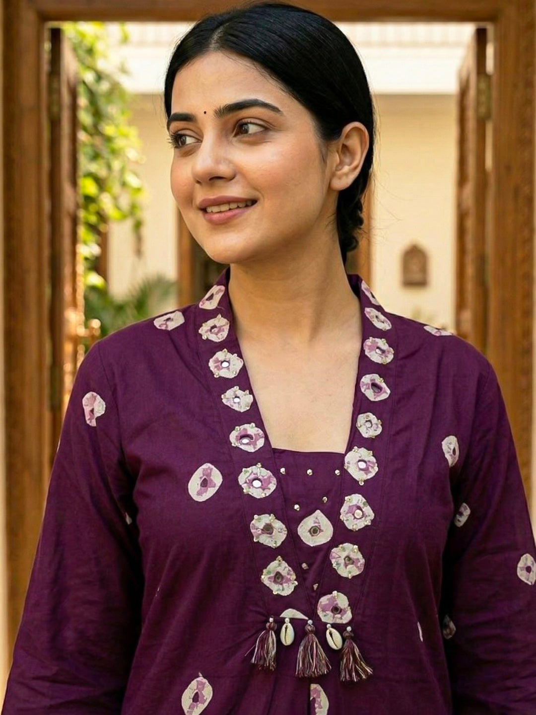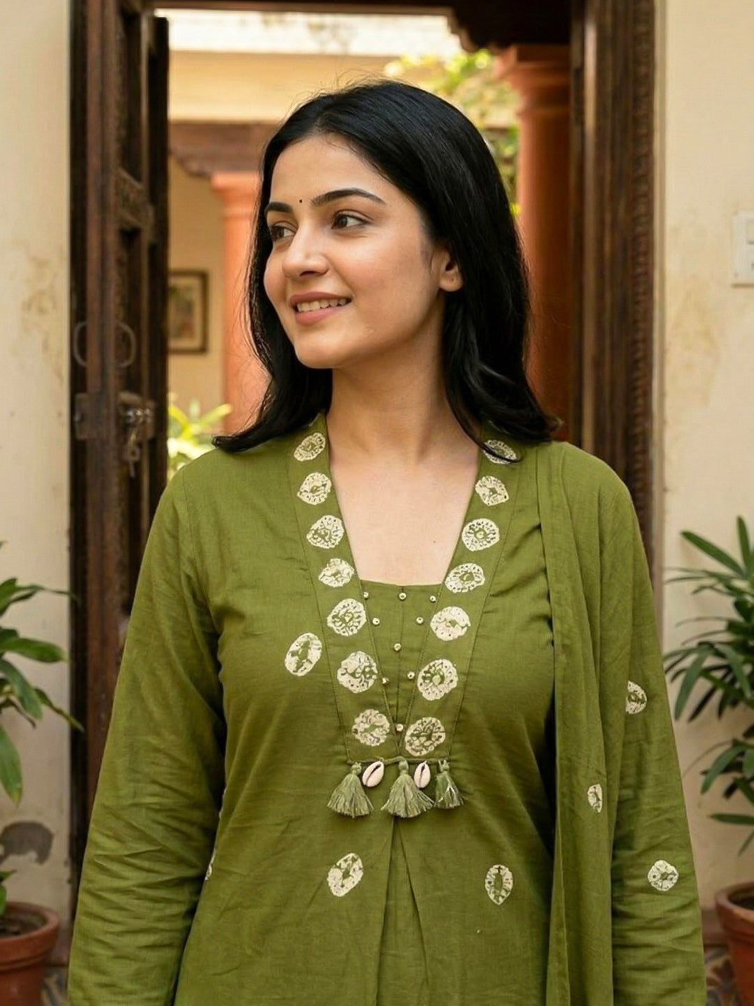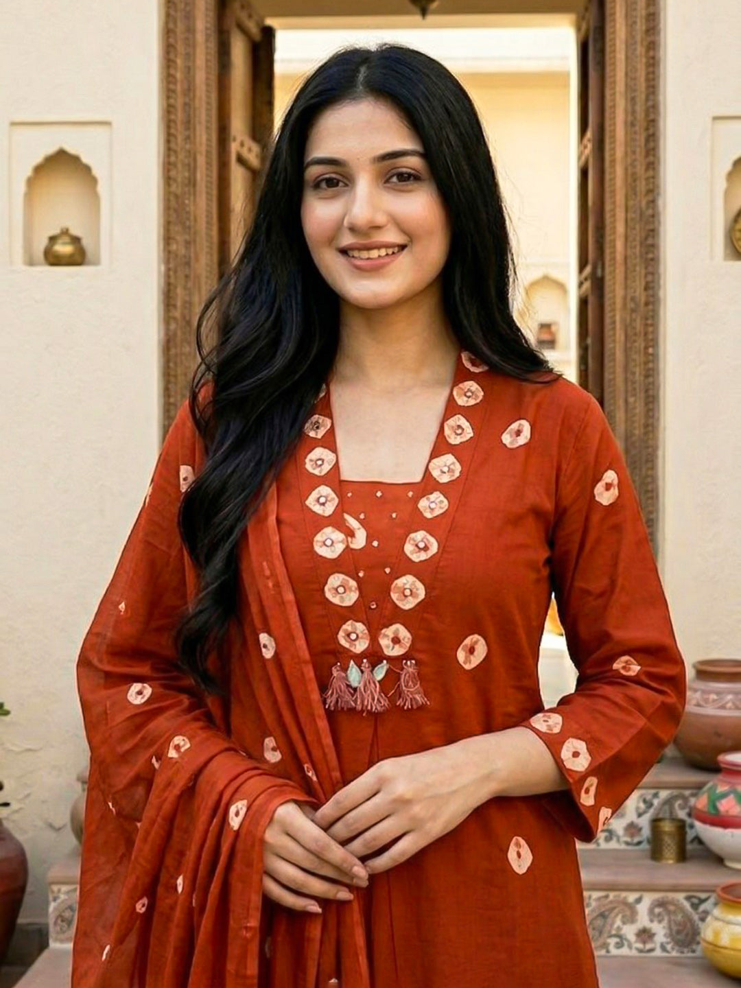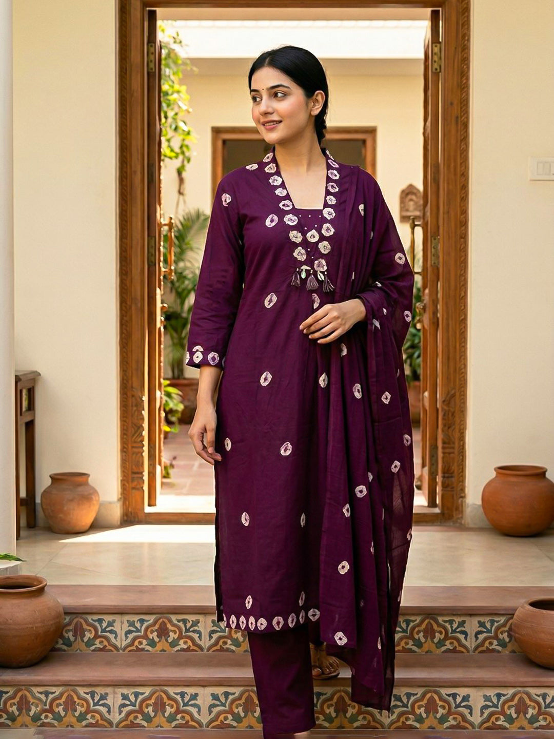 Embroidered Cotton Blend Kurta With Pant & Dupatta