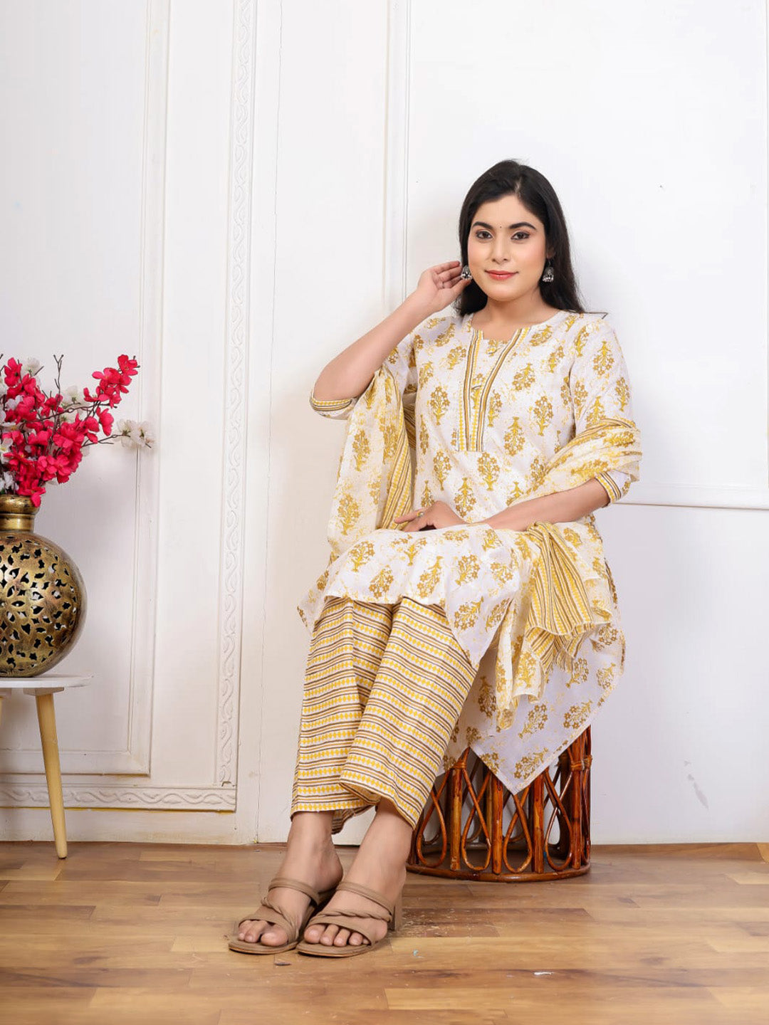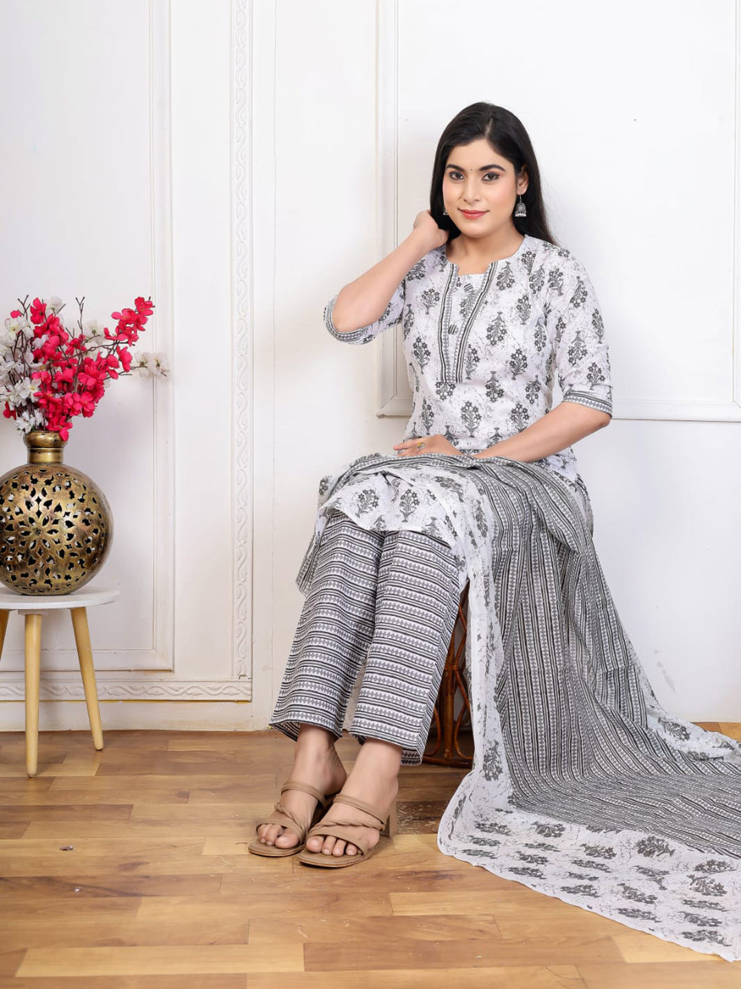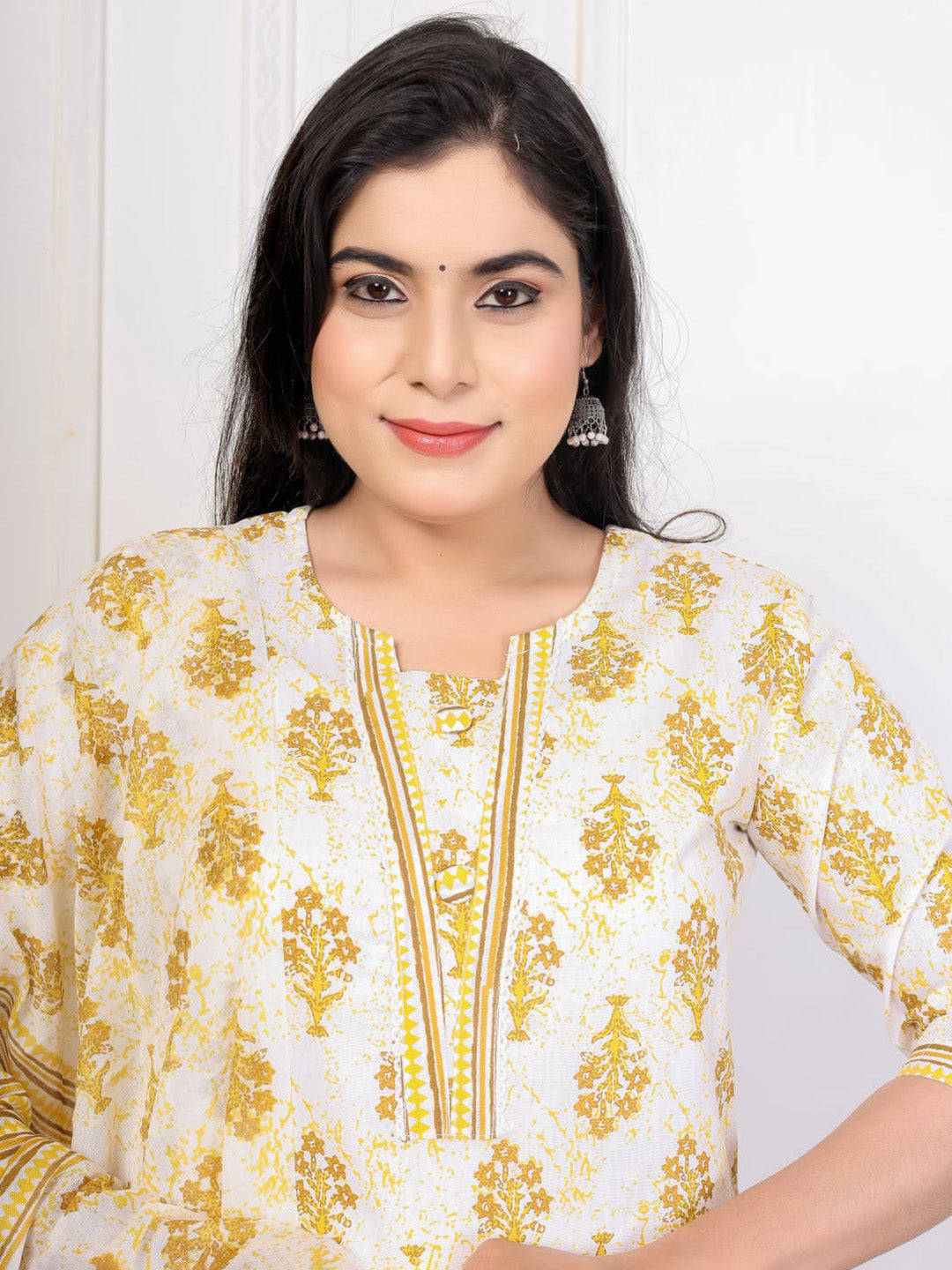 Embroidered Cotton Blend Kurta With Pant & Dupatta
