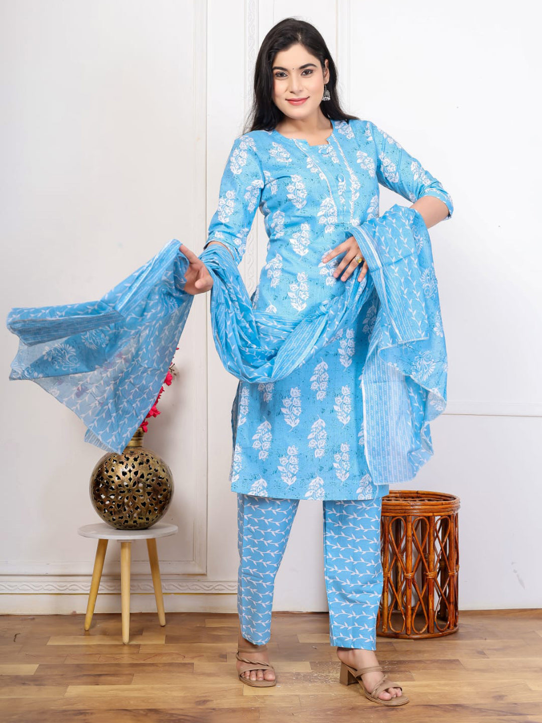 Embroidered Cotton Blend Kurta With Pant & Dupatta