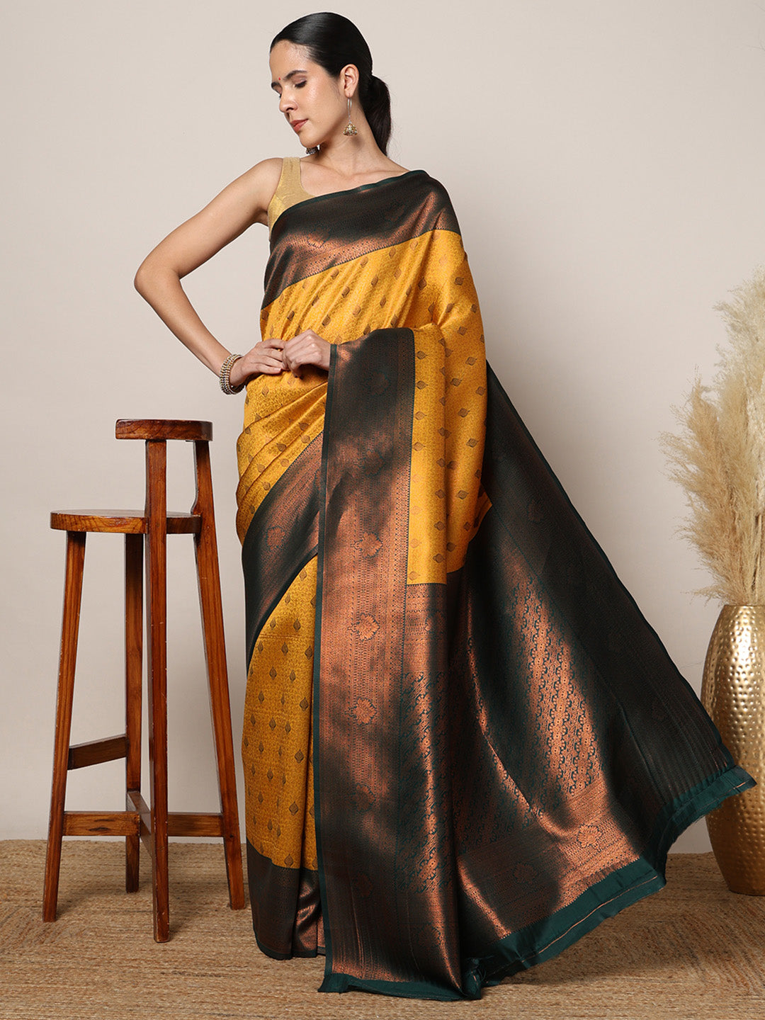 Note: The blouse shown in the pictures is just for Photoshoot purposes. The blouse you will get will be an attached running blouse.