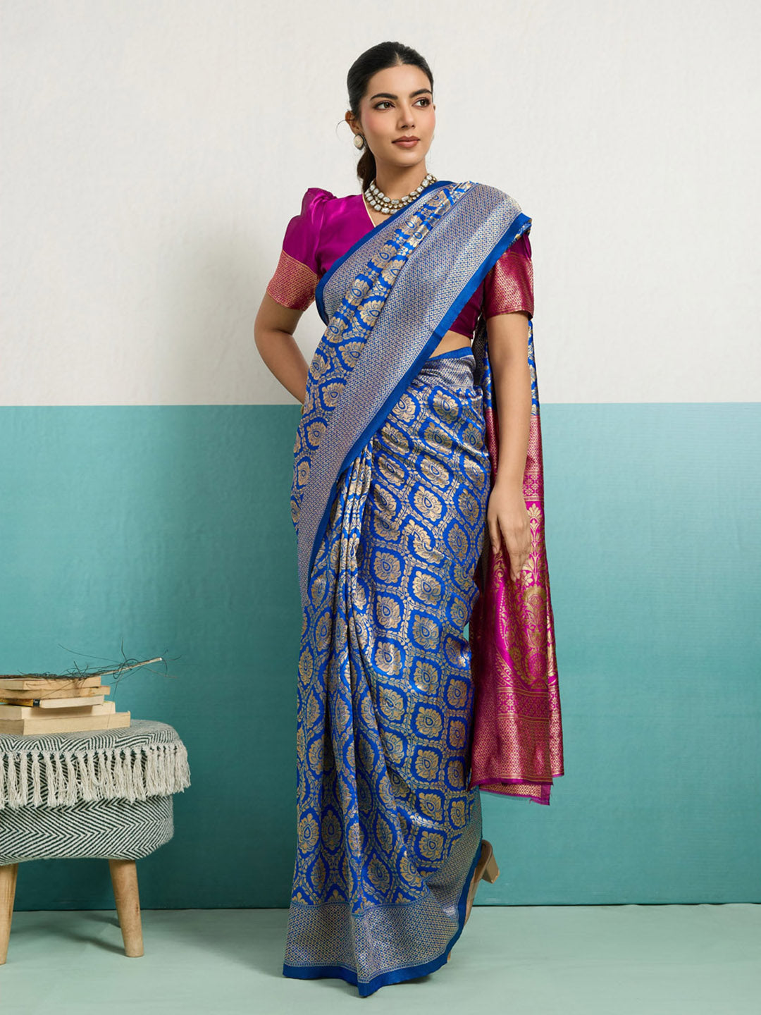 Note: The blouse shown in the pictures is just for Photoshoot purposes. The blouse you will get will be an attached running blouse.