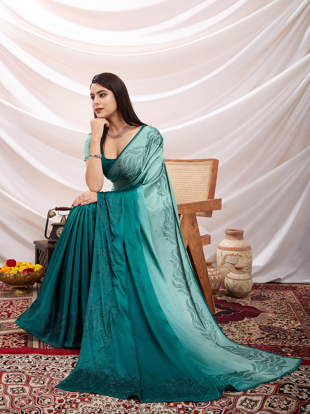 Note: The blouse shown in the pictures is just for Photoshoot purposes. The blouse you will get will be an attached running blouse.
