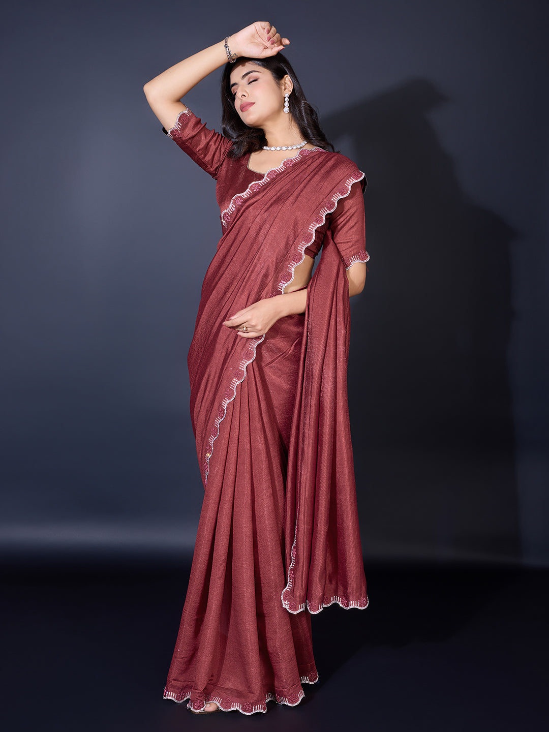 Note: The blouse shown in the pictures is just for Photoshoot purposes. The blouse you will get will be an attached running blouse.