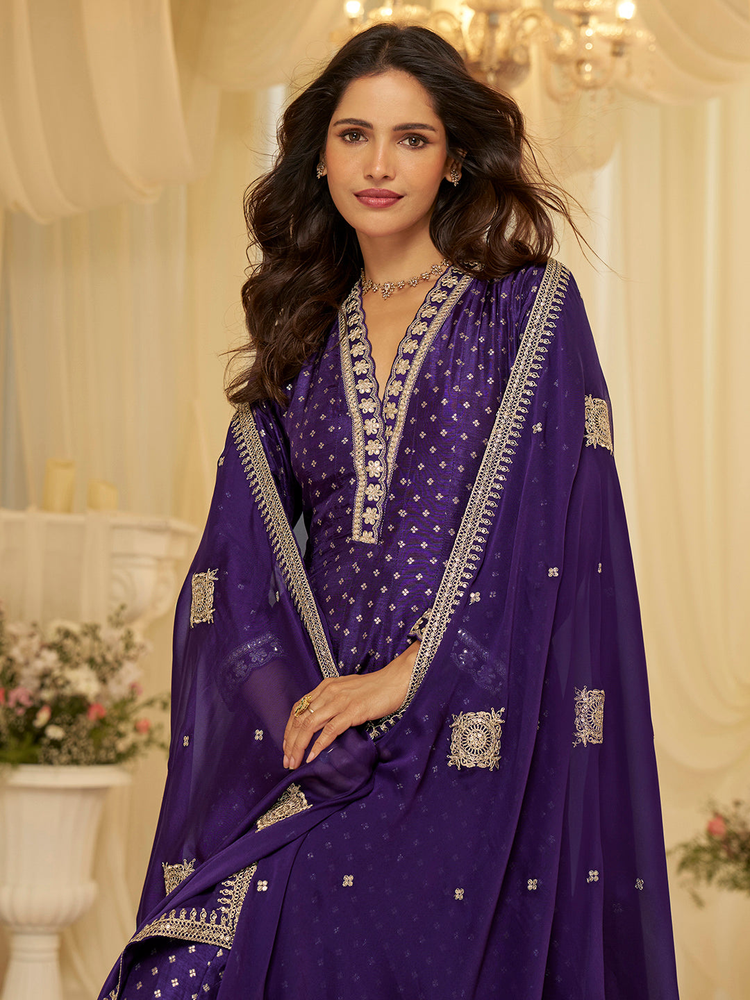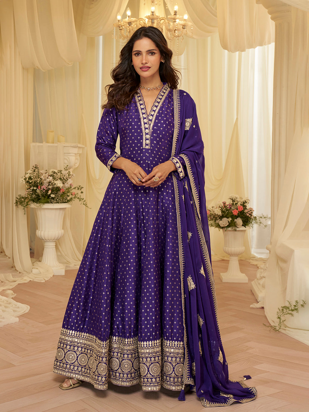 Embroidered Art Silk Gown With Dupatta